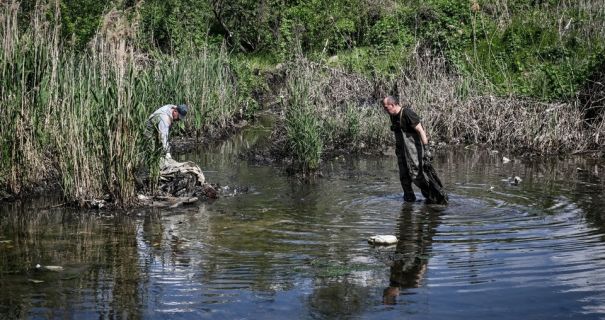 В Запорожье продолжаются работы по расчистке реки Мокрая, которая была загрязнена мазутом