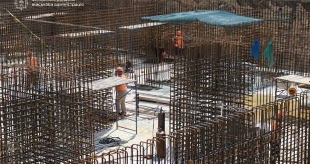 Сейчас уже обустроили нижнюю плиту из монолитного железобетона толщиной 800 мм. Также возводят армокаркасы стен укрытия. Скоро строители начнут бетонирование.