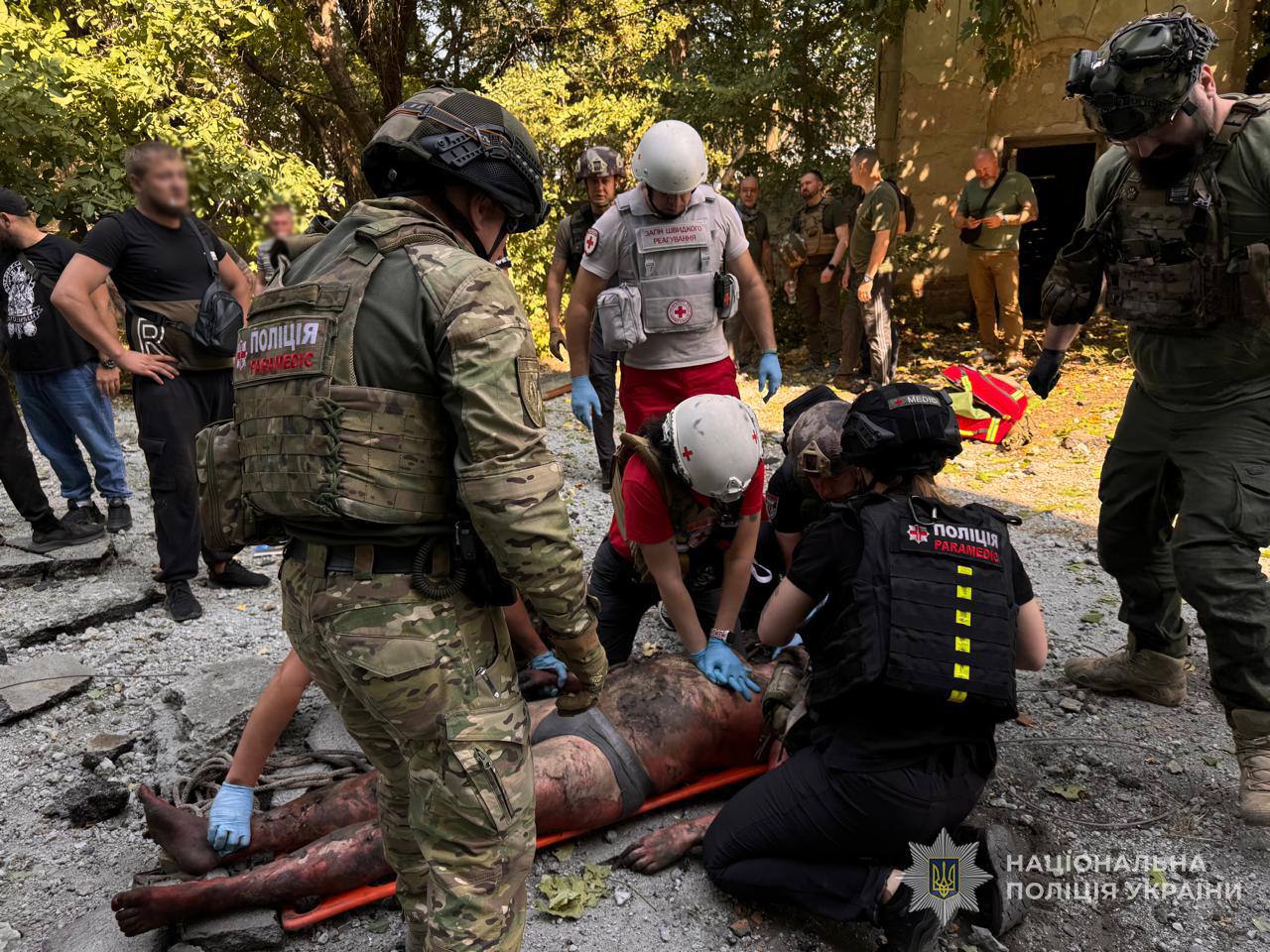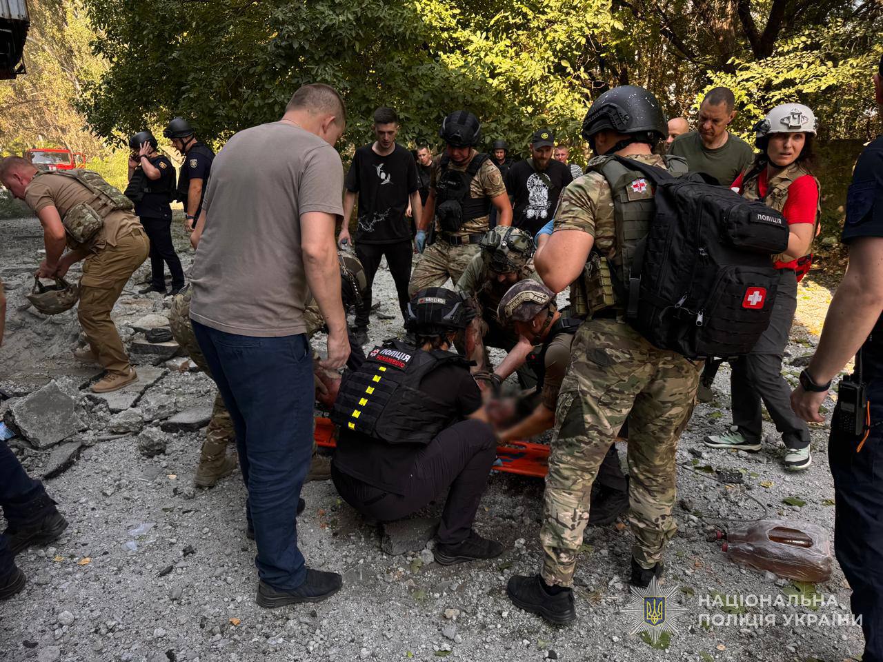 На местах работают правоохранители, спасатели, медики и коммунальные службы. Они помогают пострадавшим, ликвидируют пожары и последствия вражеской атаки.