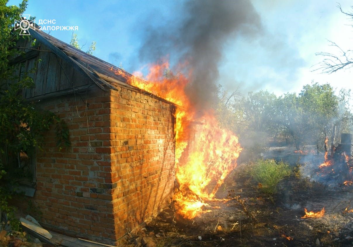 В Запорожской области из-за российских атак загорелись дома. Также пожар тушили в школе