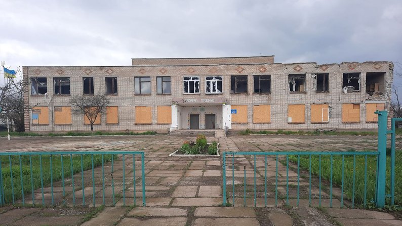 Пошкоджена будівля школи села Новомиколаївка