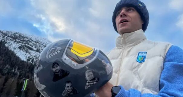 Український спортсмен-скелетоніст Владислав Гераскевич вийшов на олімпійський трек у шоломі, де зображені загиблі внаслідок російського вторгнення українські атлети