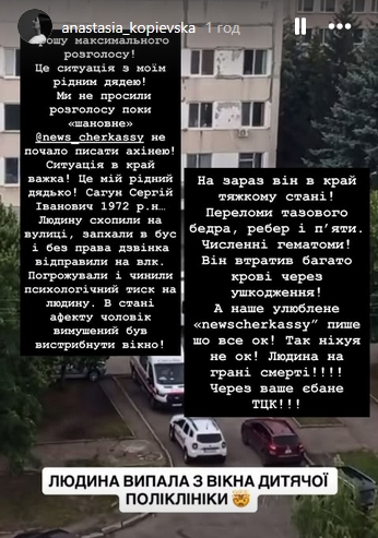 У Черкасах чоловік під час проходження ВЛК вистрибнув з вікна: його родичка звинуватила ТЦК у брехні