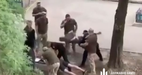 На кадрах видно, як люди у формі застосовують силу до чоловіків зі зв’язаними руками, які не чинять жодного опору. Один із присутніх піднімає затриманого за ноги та кидає його на землю.