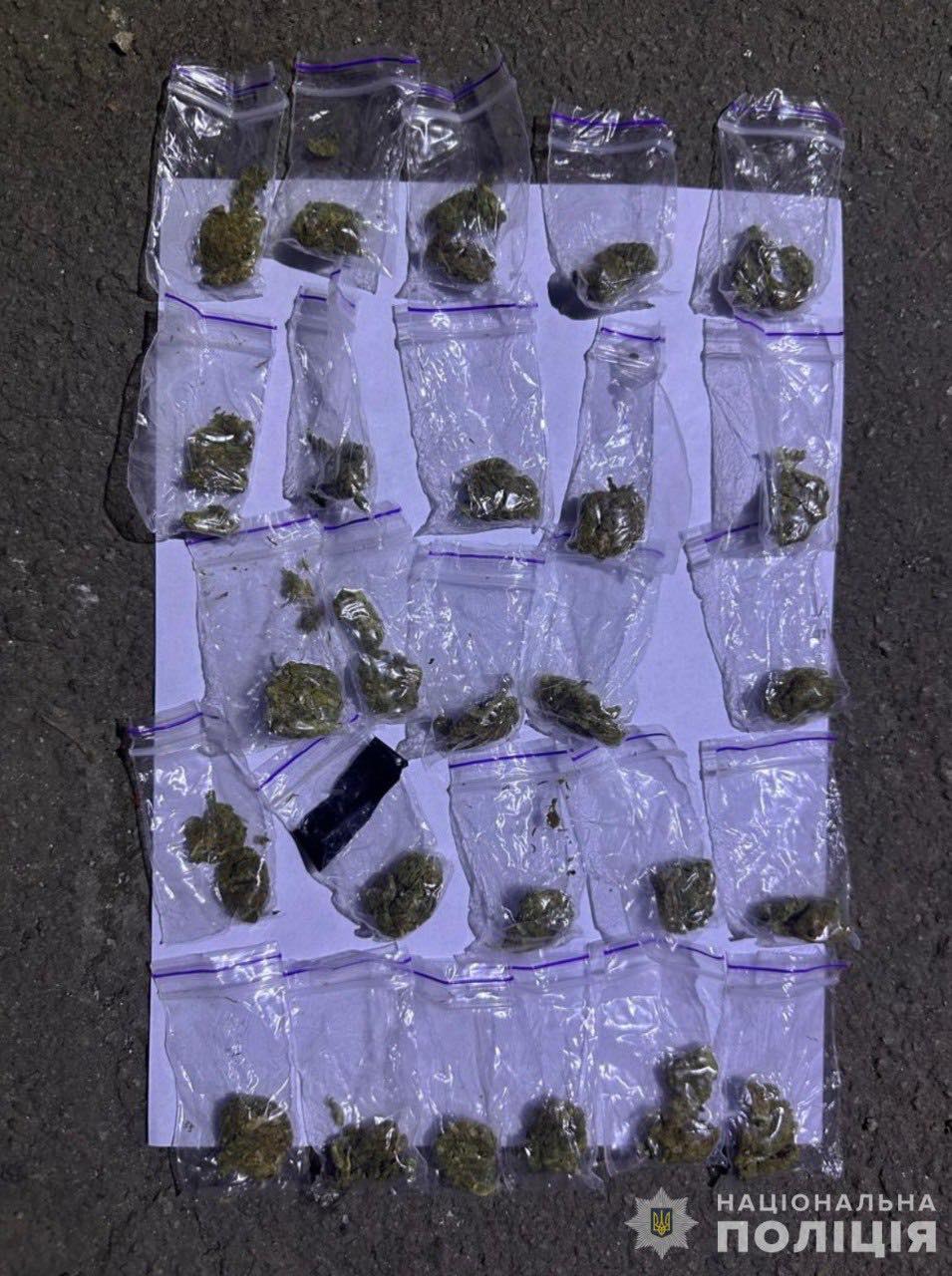 Під час поверхневої перевірки у зловмисника вилучили близько 30 сліп-пакетів із канабісом. У мобільному телефоні чоловіка правоохоронці виявили фотознімки з координатами місць уже зроблених закладок.