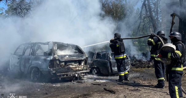 Окрім того, через уламки або вибухову хвилю загорілися автомобілі.