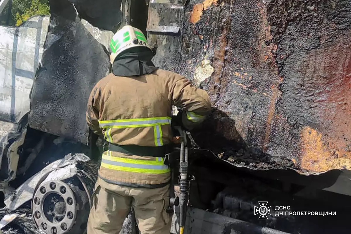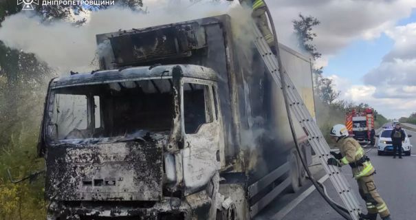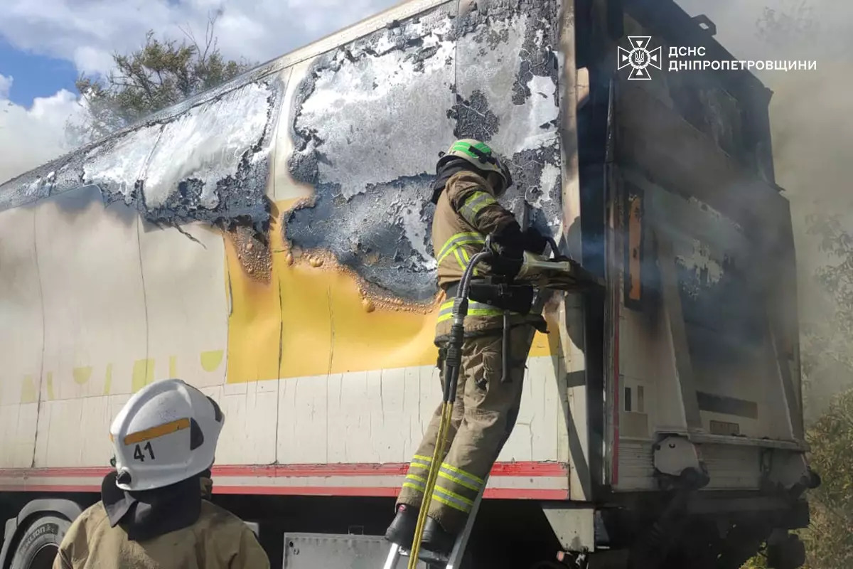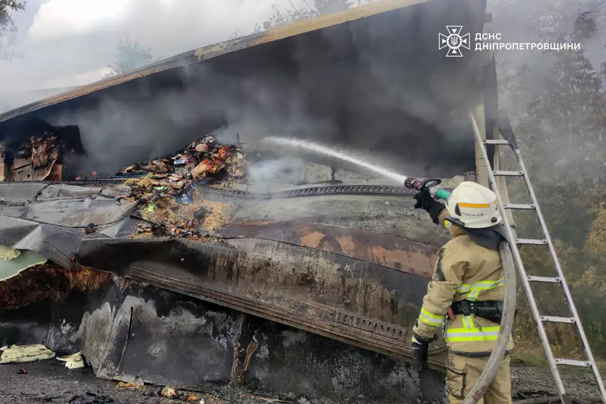 На трасі Дніпро-Кривий Ріг згоріла вантажівка з продуктами