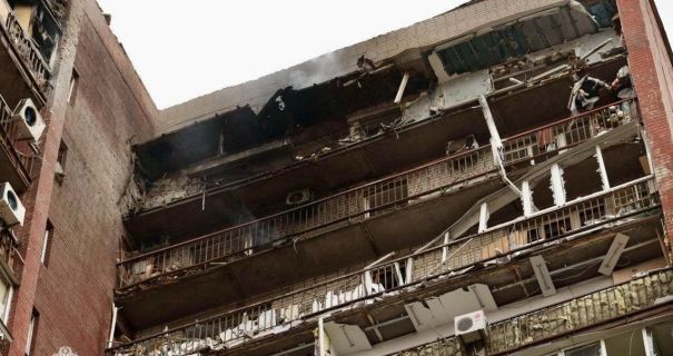 Внаслідок влучання пошкоджений 14-поверховий будинок. Виникла пожежа.