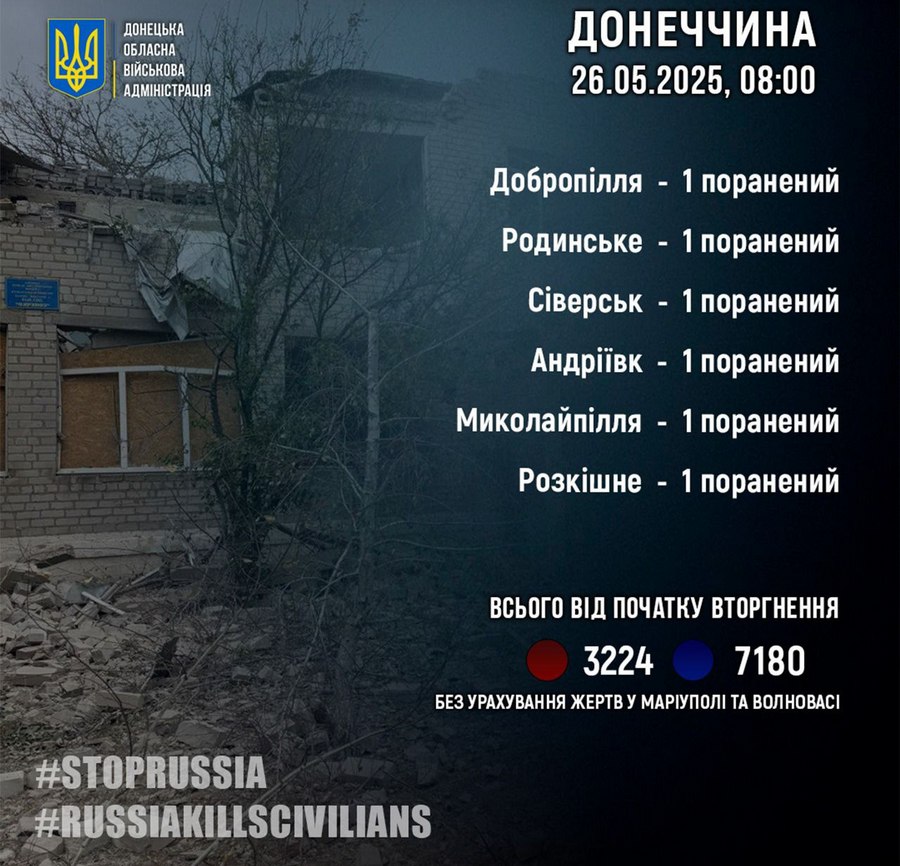 Минулої доби, 25 травня, російська армія поранила шістьох мешканців Донецької області