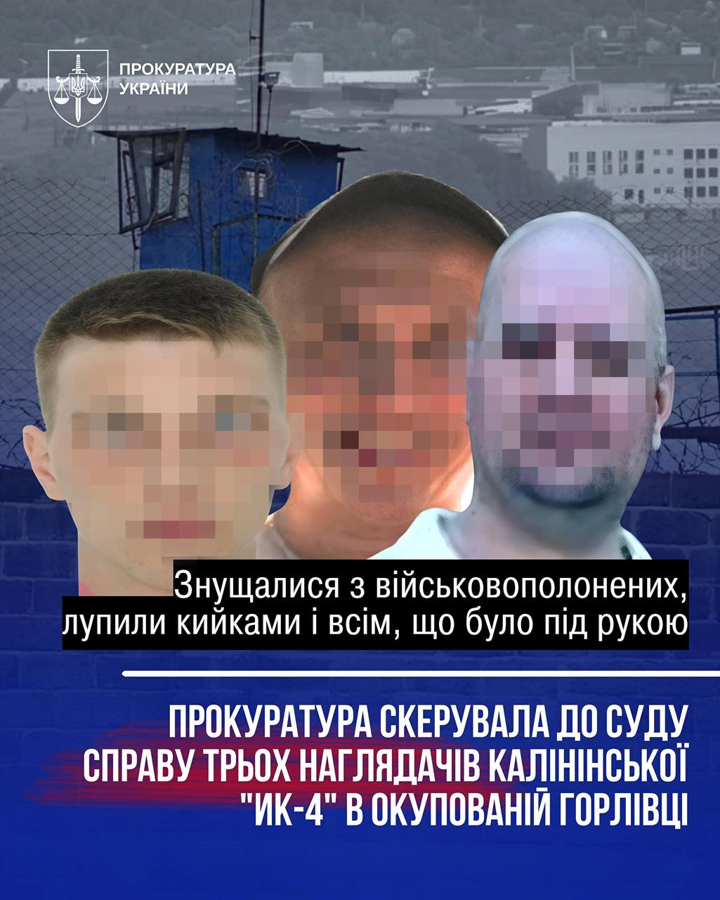 До суду направили обвинувальні акти щодо трьох співробітників так званої "Виправної колонії №4" на тимчасово окупованій території Донеччини