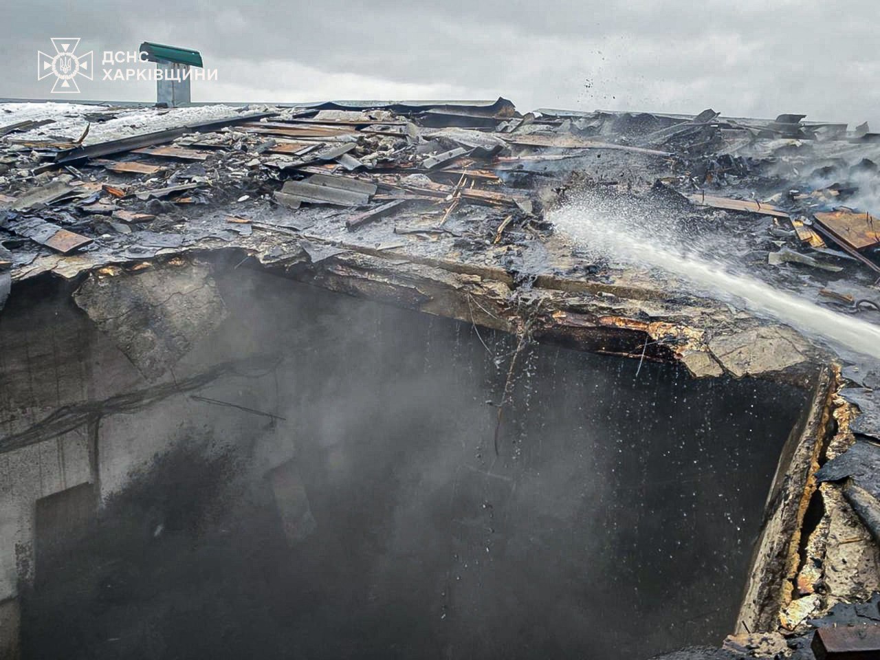 Внаслідок атаки виникли руйнації та пожежа на даху будівлі ферми. Площа займання скала 40 кв. м.