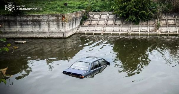Інцидент стався вранці 6 травня в мікрорайоні Дубово у Хмельницькому. Рятувальники витягли машину з водойми