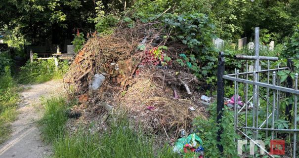 Байковий цвинтар у столиці опинився у занедбаному стані. Сміття протягом тривалого часу не вивозять — воно хаотично скинуте вздовж центральних тротуарів