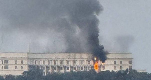 У столиці внаслідок падіння уламків ворожого дрона сталося загоряння в будівлі Кабінету міністрів