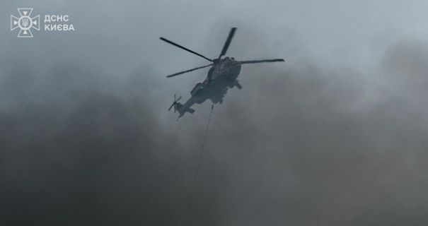 До гасіння пожеж у столиці, які виникли внаслідок атаки РФ, залучена авіація ДСНС, робототехніка і безпілотні системи