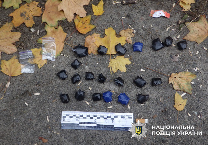 Поліцейські помітили підозрілого чоловіка на вулиці Мілютенка, коли той ховав згорток під лавкою.