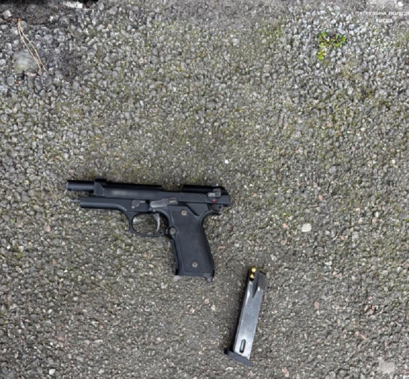 У Святошинському районі Києва поліцейські затримали чоловіка у стані сп’яніння, який ходив вулицею з предметом, схожим на пістолет.