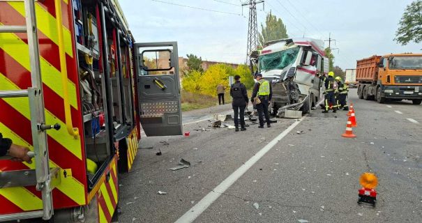 Рятувальники за допомогою гідравлічного інструменту деблокували травмованого 63-річного з понівеченої кабіни однієї з вантажівок та передали його медикам.