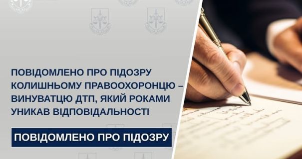 Повідомлення про підозру екс-працівнику поліції вручено за дорученням керівника обласної прокуратури. Йому інкримінують порушення правил безпеки дорожнього руху особою, яка керує транспортним засобом, що спричинило тяжкі тілесні ушкодження малолітньому (ч. 2 ст. 286 КК України). Колишньому правоохоронцю загрожує до 8 років позбавлення волі.