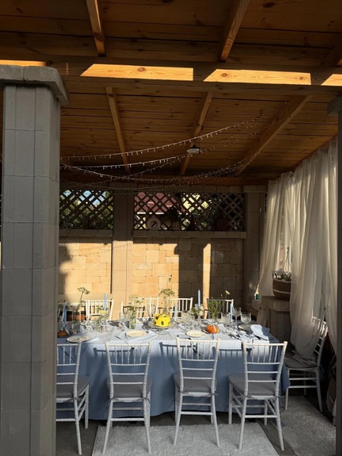 Українська телеведуча Леся Нікітюк минулого місяця вперше стала мамою. Це вона відсвяткувала з близькими. У соцмережі вона показала, як прикрасила все на подвір'ї. Можна також помітити дитячий святковий торт.