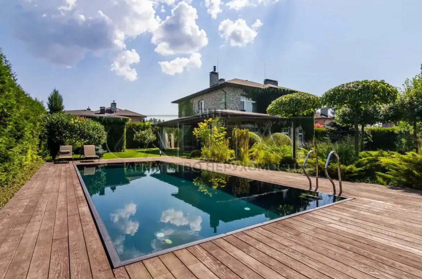 Будинок знаходиться в закритому містечку з подвійними парканами. Є відеоспостереження та посилена охорона.