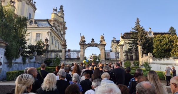 Чин похорону розпочався о 12:00 в оборі святого Юра (площа святого Юра, 5). У храмі вже зібралося багато людей, серед яких — відомі політики, посадовці та громадські діячі.