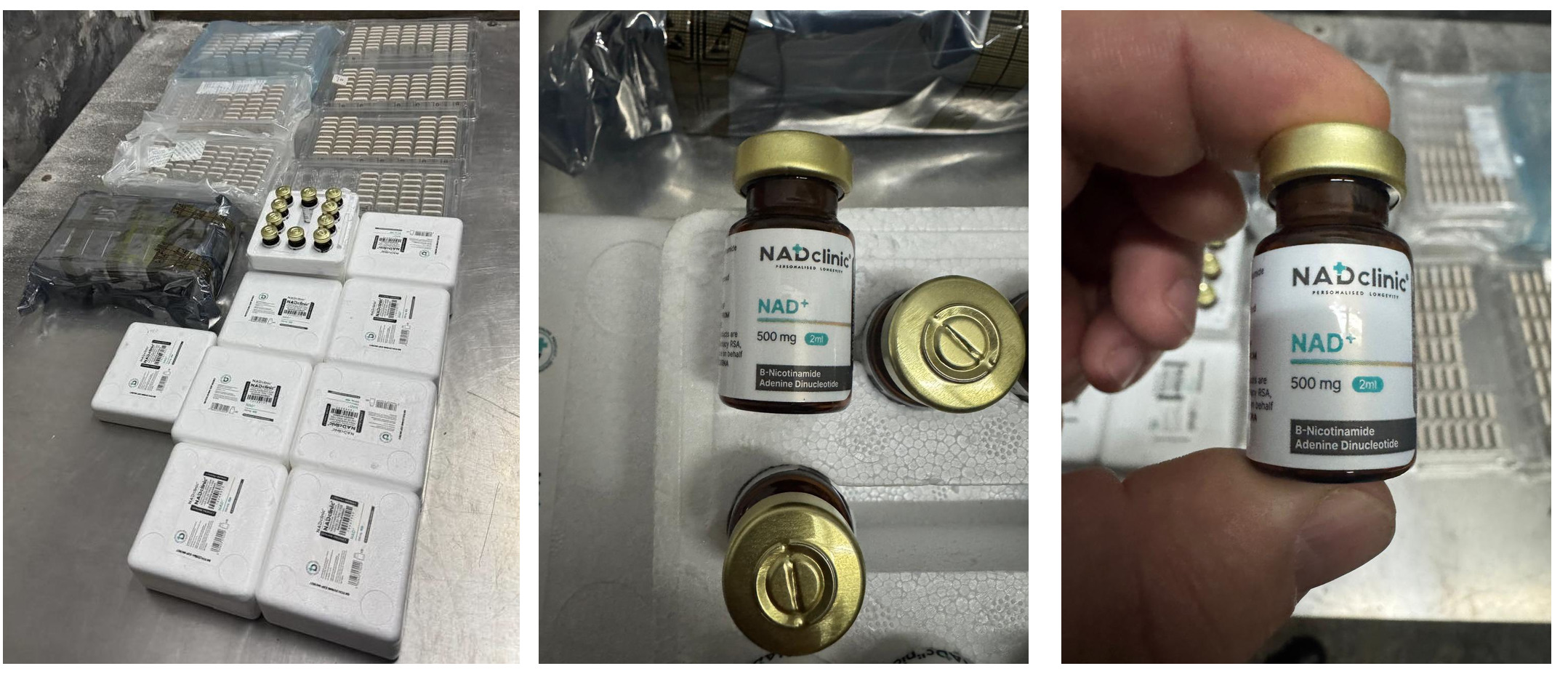 • 90 флаконів ін’єкцій NAD (препарати для терапії довголіття);
