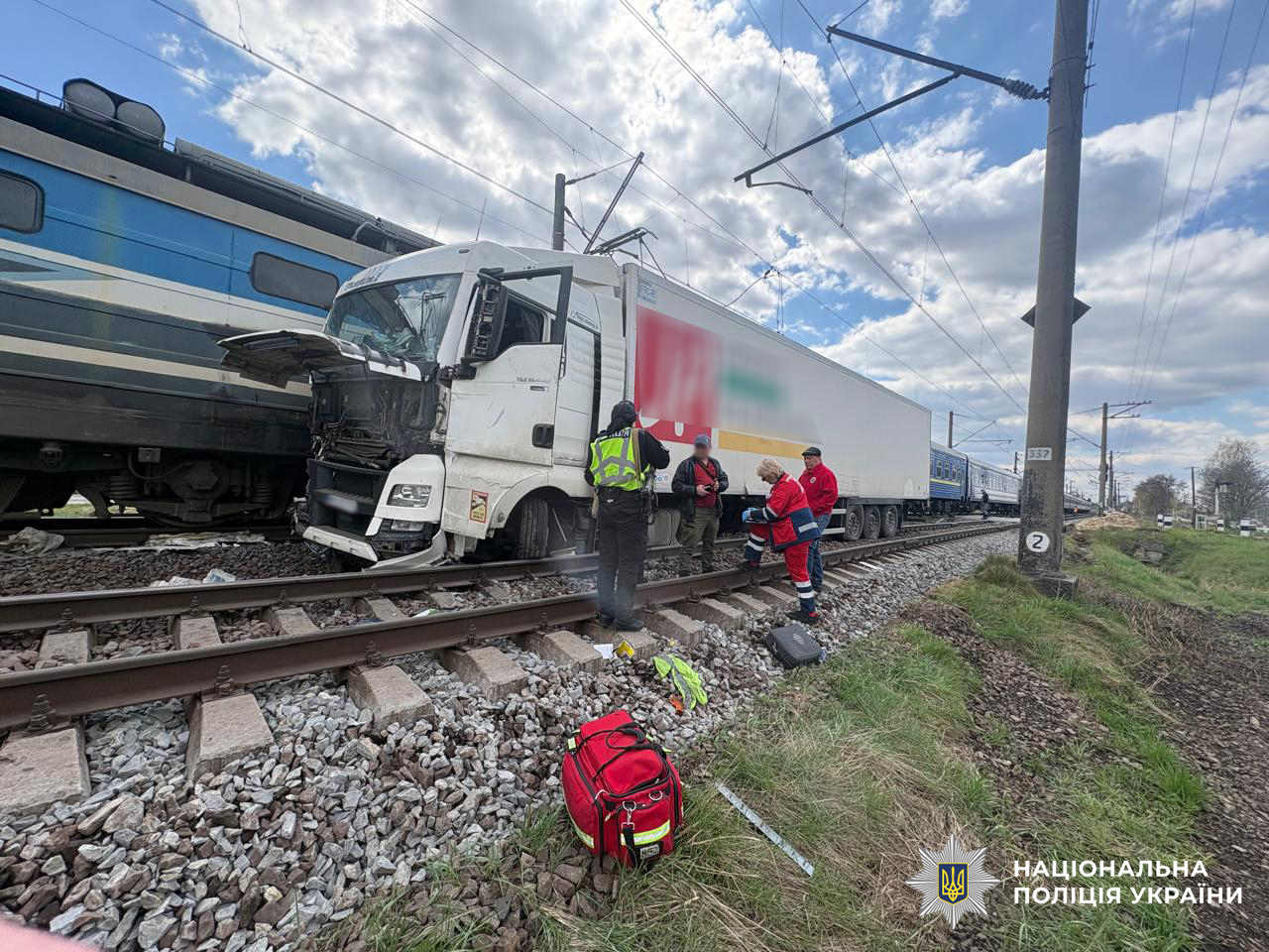 На Львівщині 21 квітня близько 14:20 вантажний автомобіль зіткнувся з потягом Перемишль – Київ