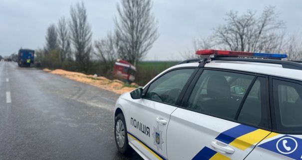 Вантажівка зазнала механічних пошкоджень, а зерно висипалося на дорогу та узбіччя. Винуватцю ДТП загрожує до трьох років обмеження волі. Наразі поліцейські встановлюють усі обставини аварії.