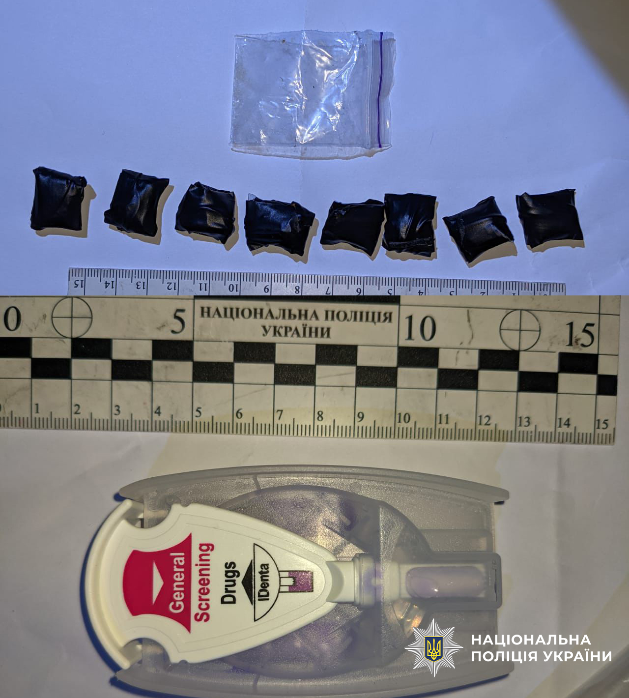 Поліцейські виявили та вилучила у зловмисниці, а також зі зроблених нею схованок, 10 згортків з особливо небезпечними психотропними речовинами.