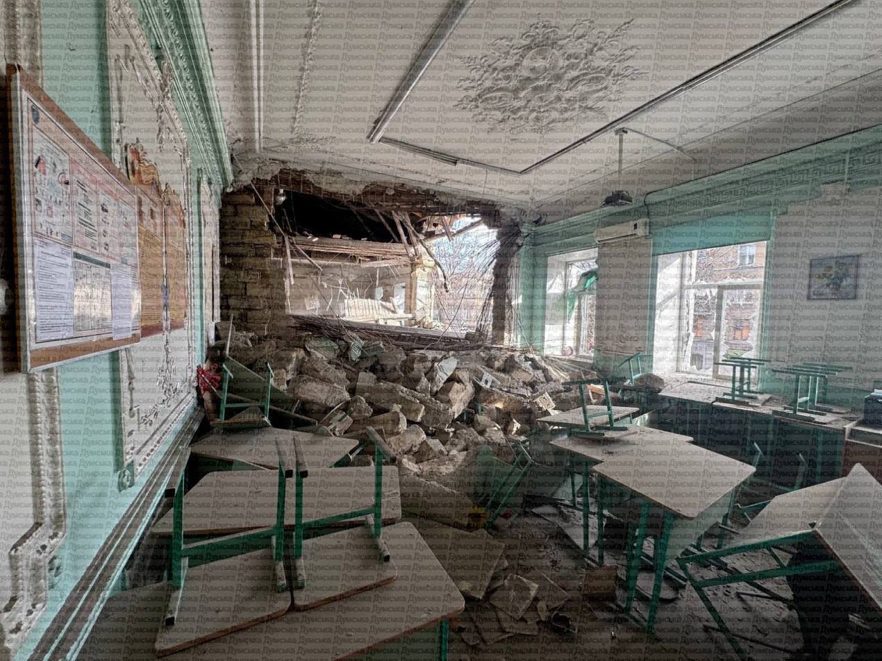 На опублікованих посадовцем фото можна побачити, що в приміщенні закладу освіти зруйновано частину стін, вибито вікна та пошкоджено стелю.