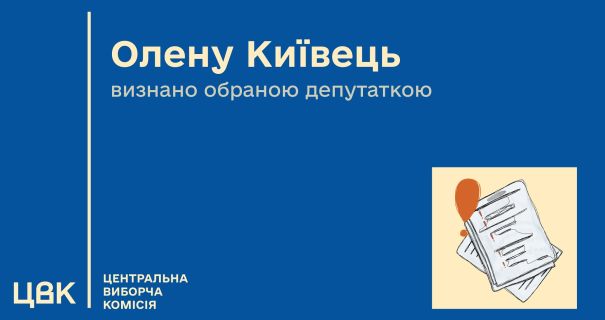 Там зазначають, що для реєстрації народною депутаткою України Олена Київець не пізніш як на двадцятий день з дня офіційного оприлюднення сьогоднішнього рішення ЦВК має подати до Комісії визначені виборчим законодавством документи.