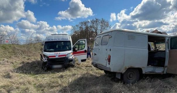 Зіткнулися автомобіль УАЗ та карета швидкої допомоги Peugeot. Від удару обидва авто з'їхали в кювет.