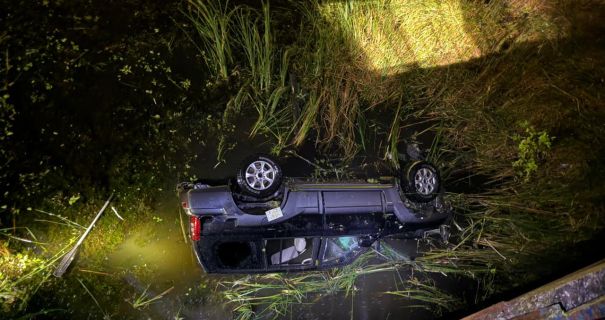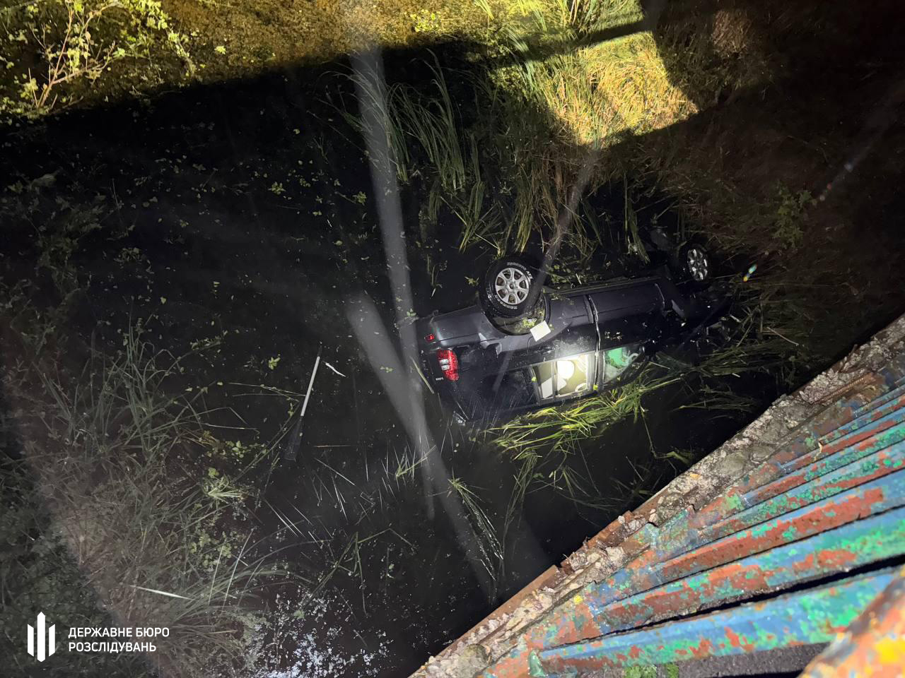 Під час переслідування на в'їзді до одного з населених пунктів Полтавського району водій перевищив швидкість, не впорався з керуванням, з'їхав з дороги та допустив перекидання автомобіля у водойму.