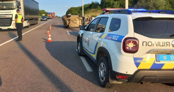 На Прикарпатті зіткнулись іномарки: авто перекинулось