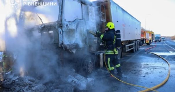 Сьогодні, 21 січня, на автодорозі М-06 "Київ-Чоп" поблизу села Зелений Гай у Дубенському районі Рівненської області загорівся вантажний автомобіль