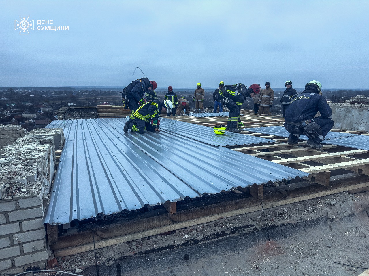 На частково зруйнованій покрівлі змонтовано тимчасовий навіс площею до 70 кв. м.