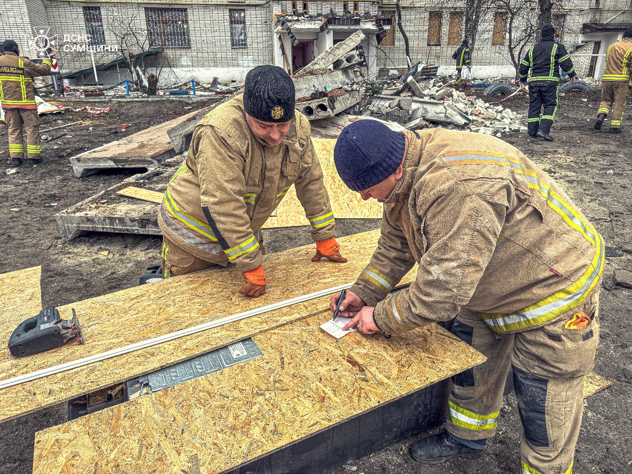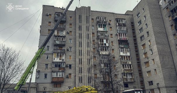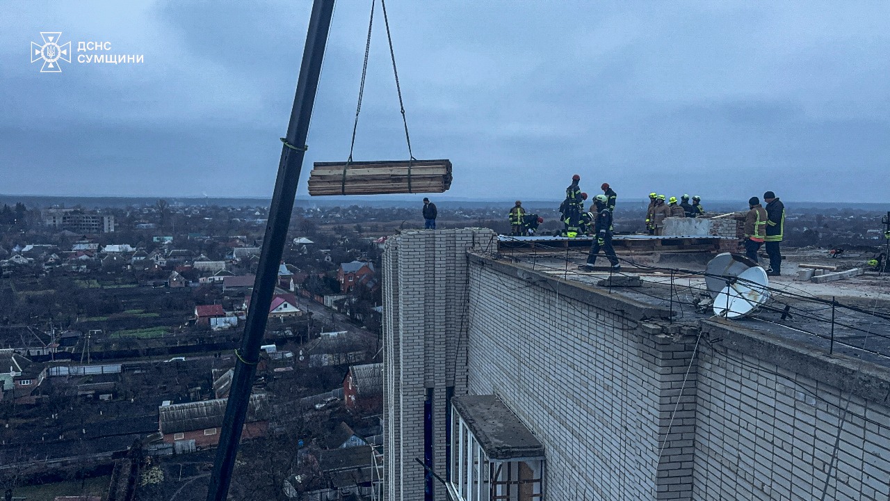 На Сумщина в Охтирці рятувальники завершили аварійно-відновлювальні роботи у 9-поверховому будинку, який нещодавно постраждав від атаки ворожого БпЛА