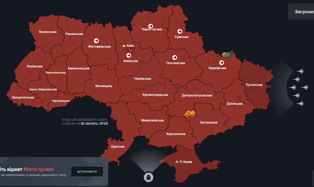 В ніч на 25 лютого російські терористи перед запусками ракет знову масовано атакували Україну дронами-камікадзе