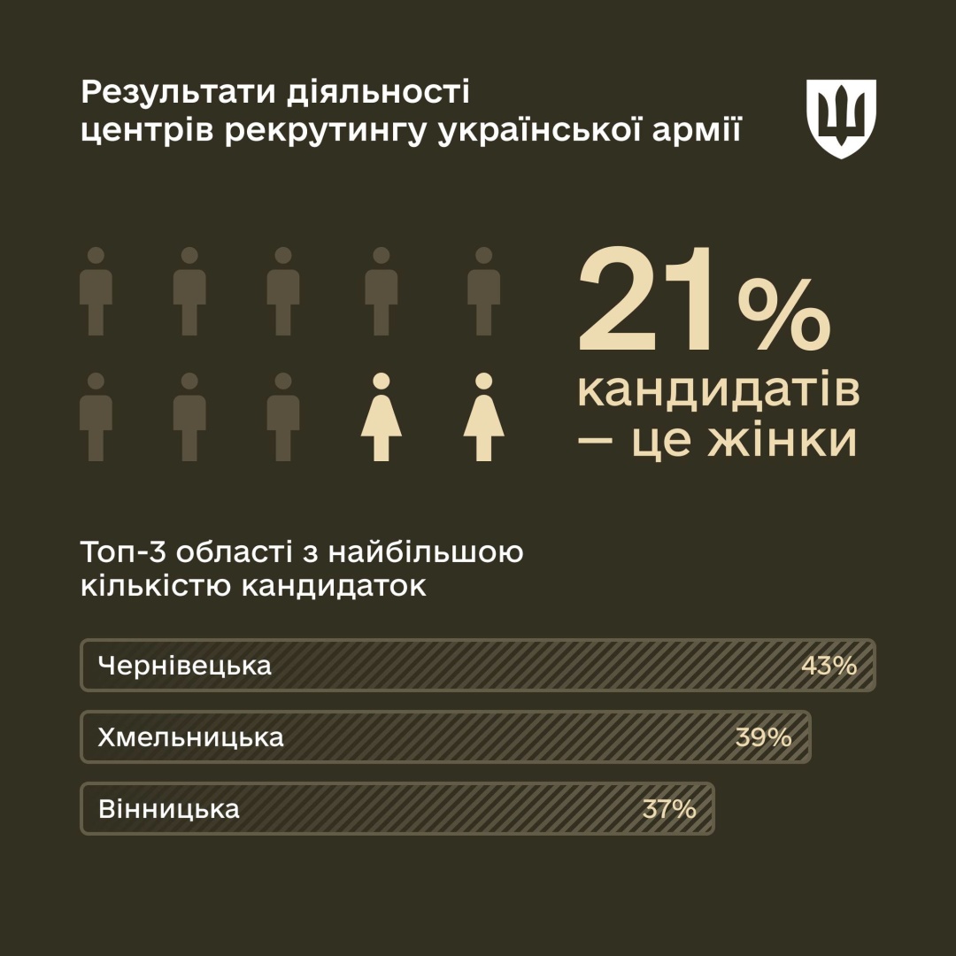 - Чернівецька область — 43% жінок серед усіх звернень,