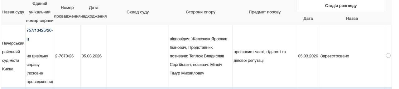 Предметом позову є захист честі, гідності та ділової репутації пана Міндіча.