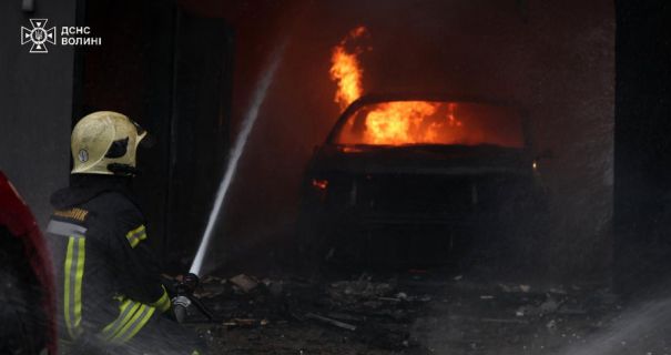 Сьогодні вночі внаслідок масованого ракетного обстрілу РФ у Луцьку виникли пожежі на території гаражного кооперативу та одного з приватних підприємств міста