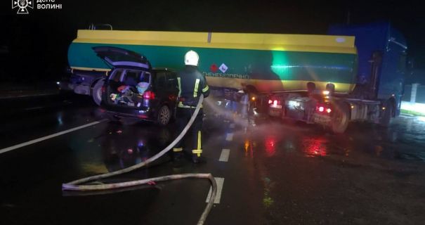 Ввечері 7 жовтня в селі Дачне Волинської області зіткнулися легковий автомобіль і вантажівка, що перевозила пальне