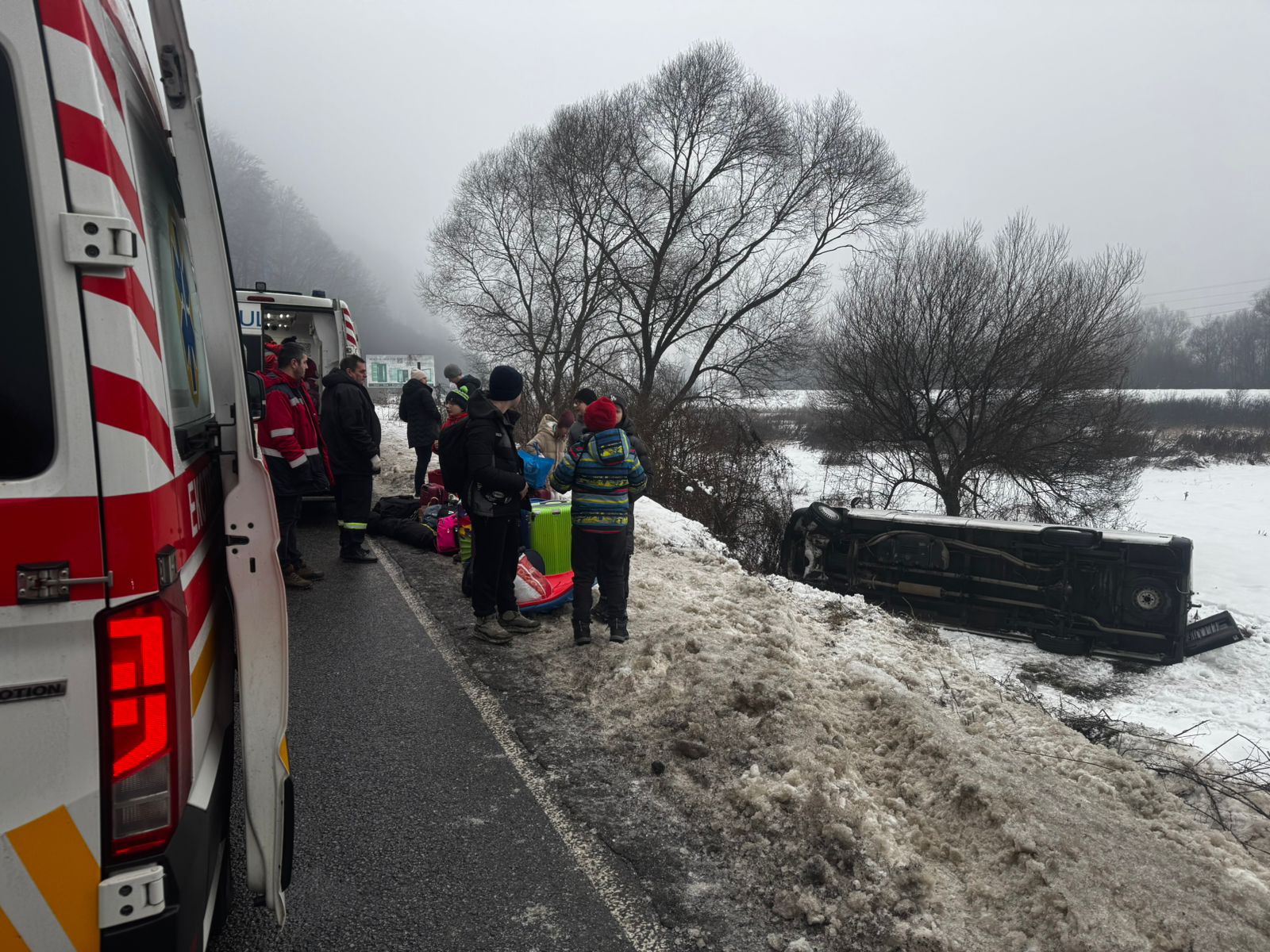 За попередньою інформацією, о 08:36 через ожеледь мікроавтобус Mercedes Sprinter з’їхав з траси між Перечином та селом Зарічово й перекинувся на бік.