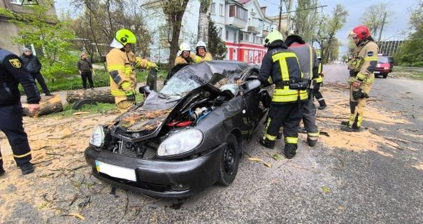 Зазначається, що Ч\через сильні пориви вітру дерево впало на легковий автомобіль, у якому перебував водій.